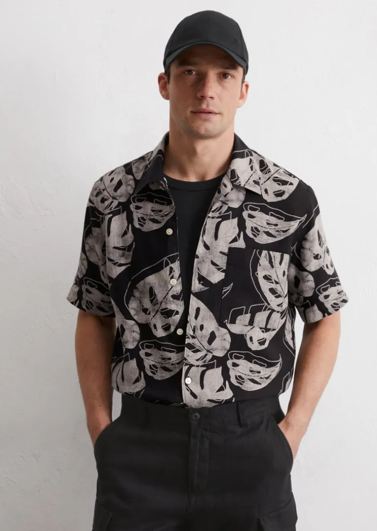 Kurzarm-Hemd regular aus reinem Leinen in schwarz