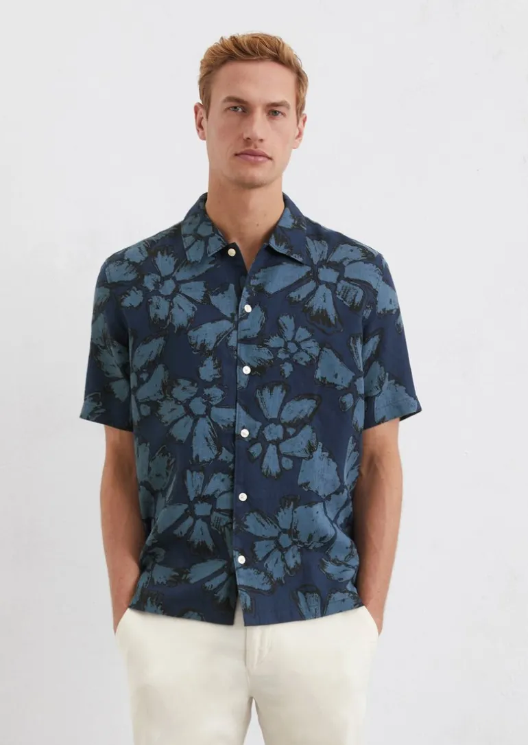 Kurzarm-Hemd regular aus reinem Leinen in blau