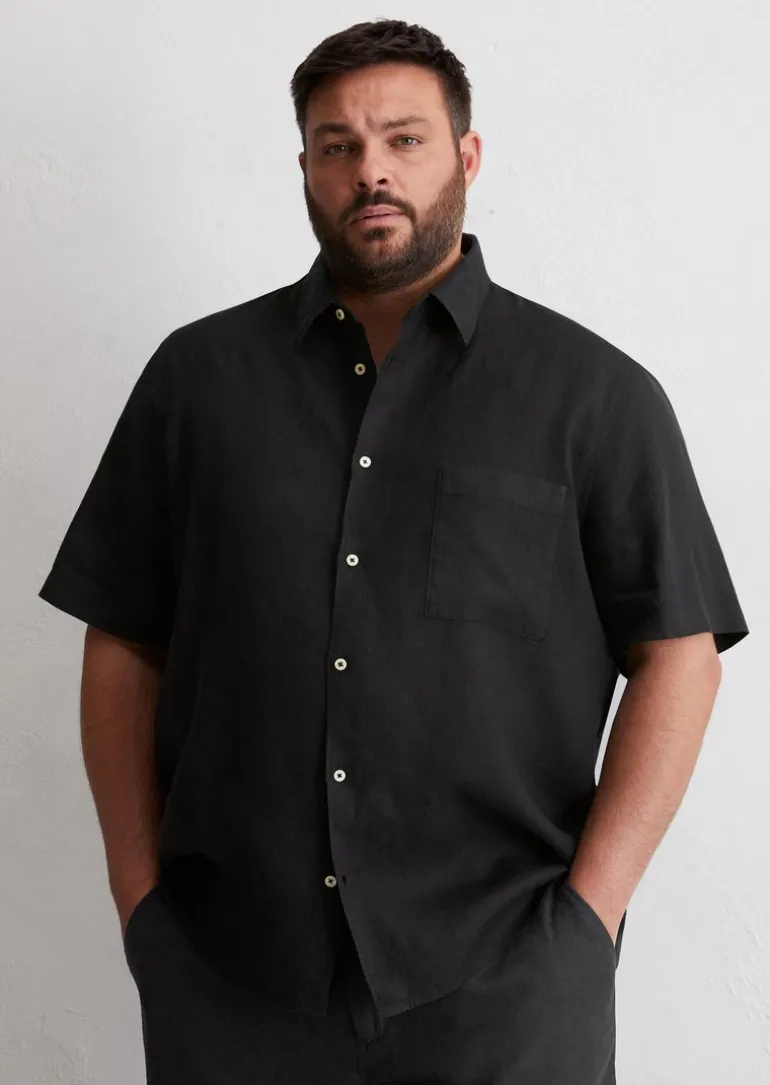 Kurzarm-Hemd regular aus reinem Leinen in schwarz