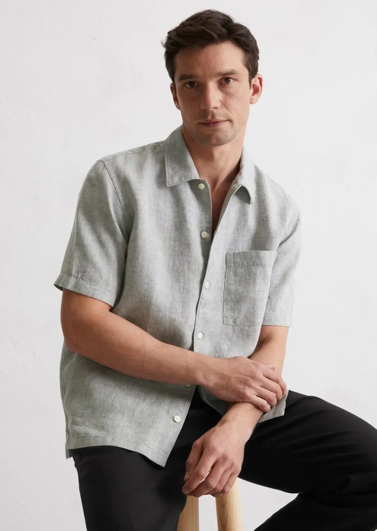 Kurzarm-Hemd regular aus reinem Leinen in grau