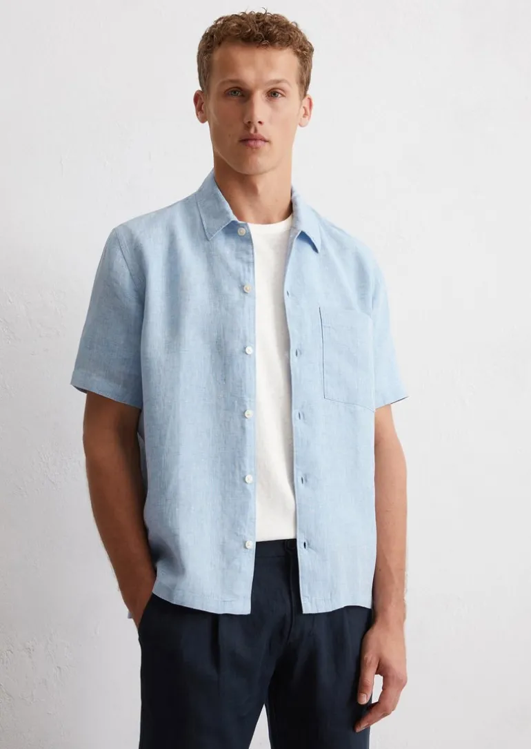 Kurzarm-Hemd regular aus reinem Leinen in blau