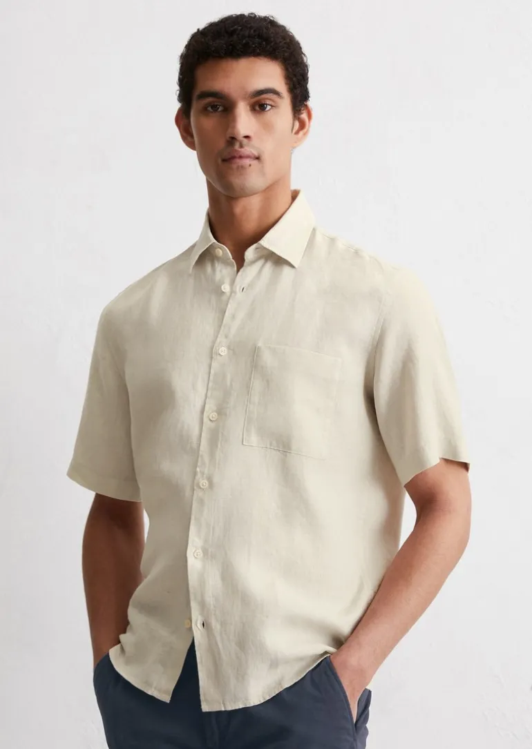 Kurzarm-Hemd regular aus reinem Leinen in braun