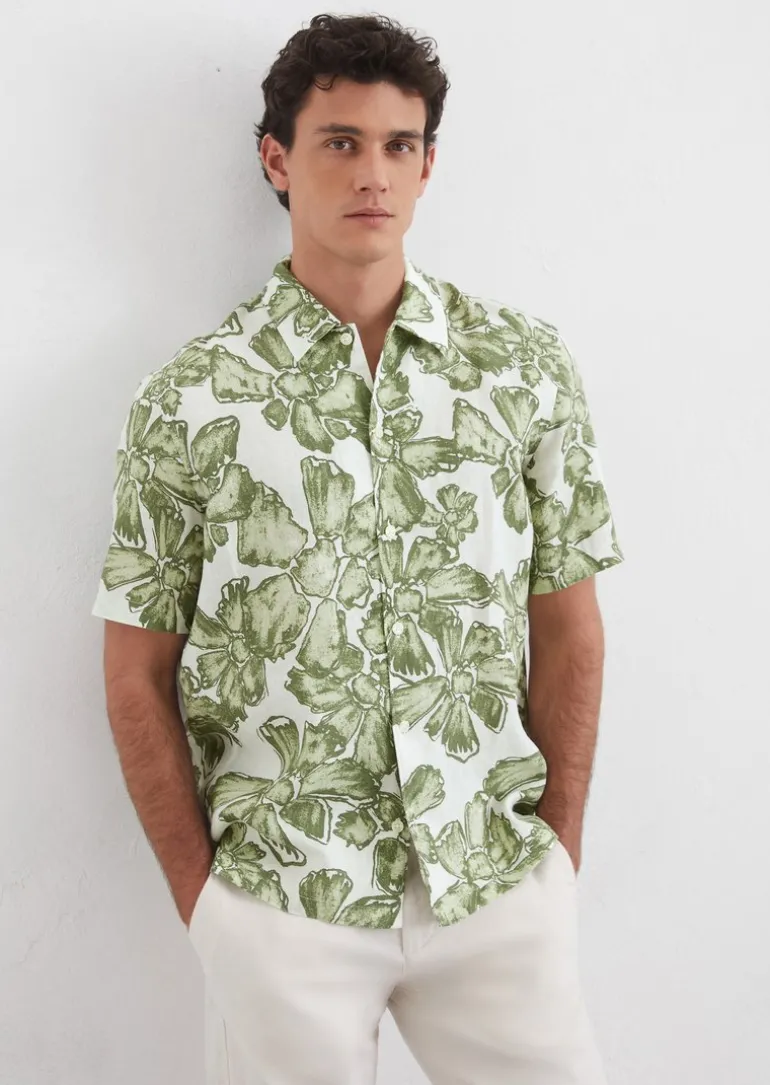 Kurzarm-Hemd regular aus reinem Leinen in grün