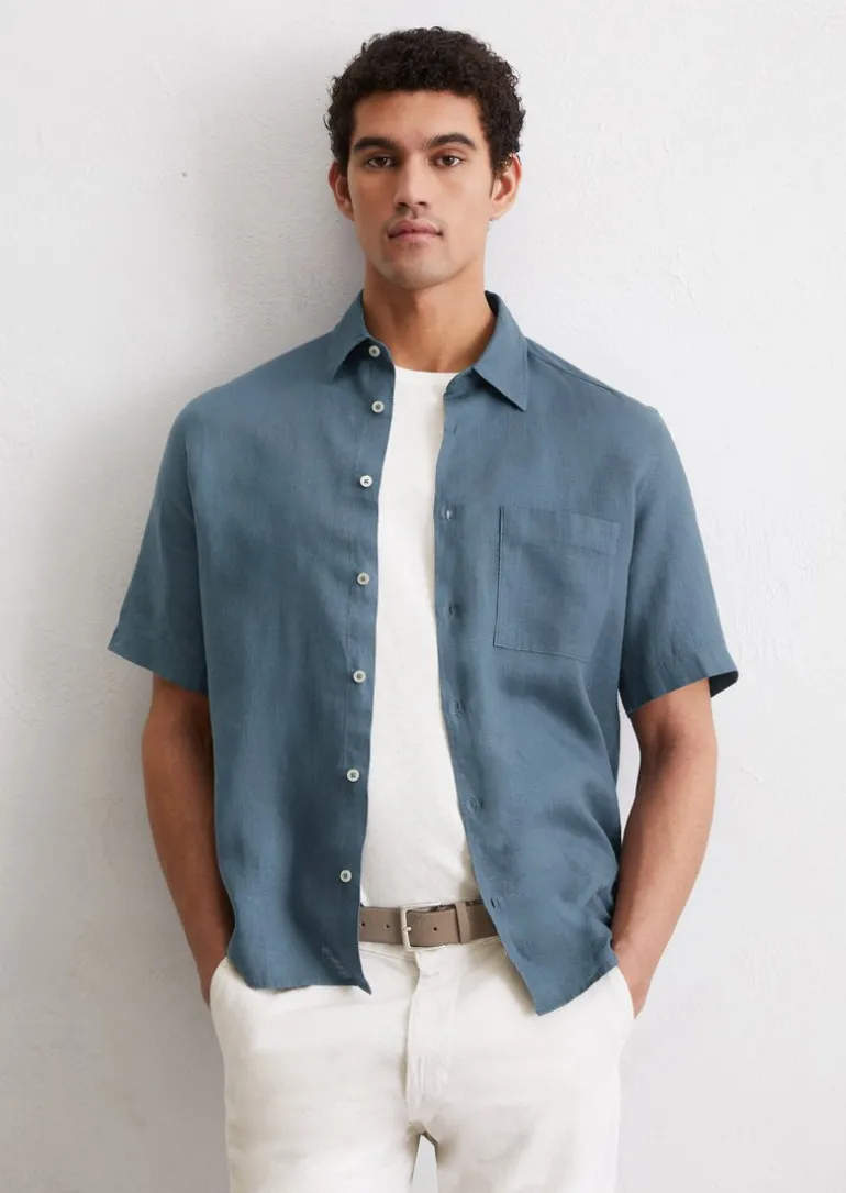 Kurzarm-Hemd regular aus reinem Leinen in blau