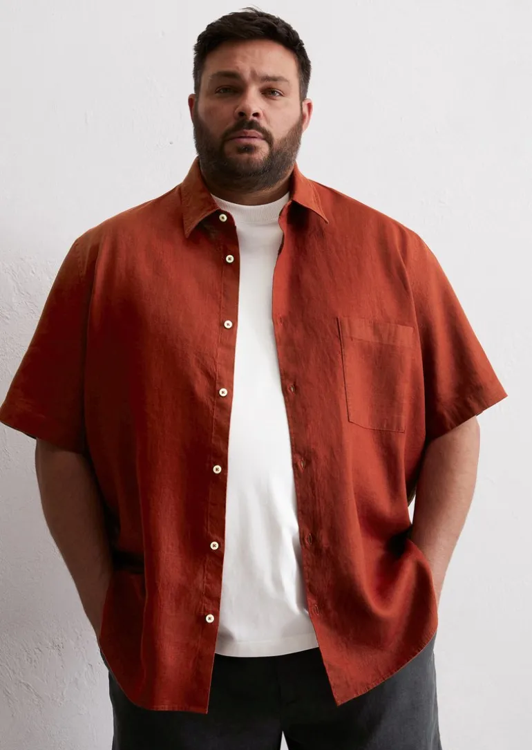 Kurzarm-Hemd regular aus reinem Leinen in rot