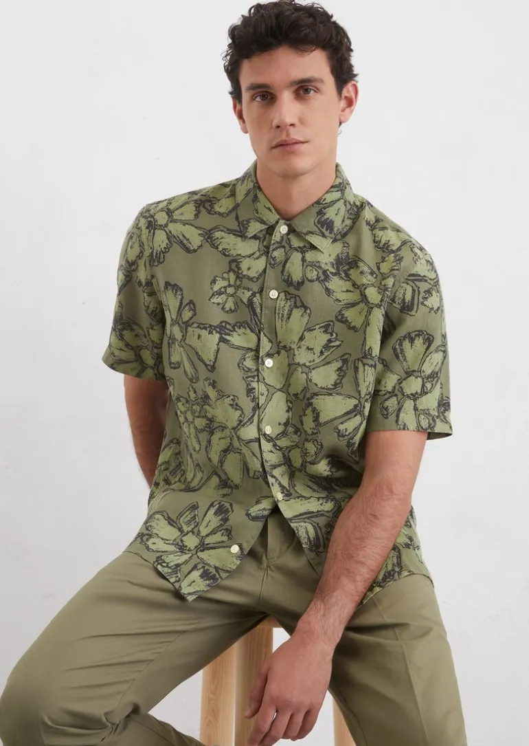 Kurzarm-Hemd regular aus reinem Leinen in grün