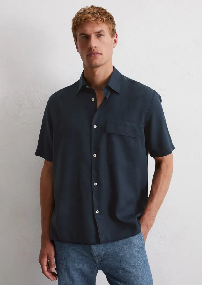 Kurzarm-Hemd regular aus softem Lyocell in blau