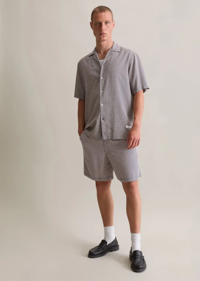 Kurzarm-Hemd regular aus softer Viskose in blau