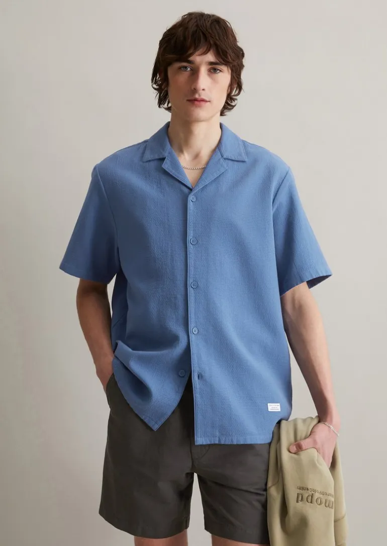 Kurzarm-Hemd regular fein strukturiert aus Bio-Baumwolle in blau