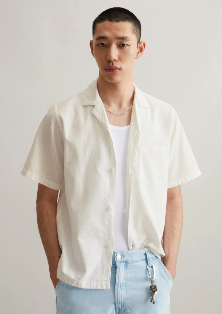 Kurzarm-Hemd regular mit feiner Struktur in weiss