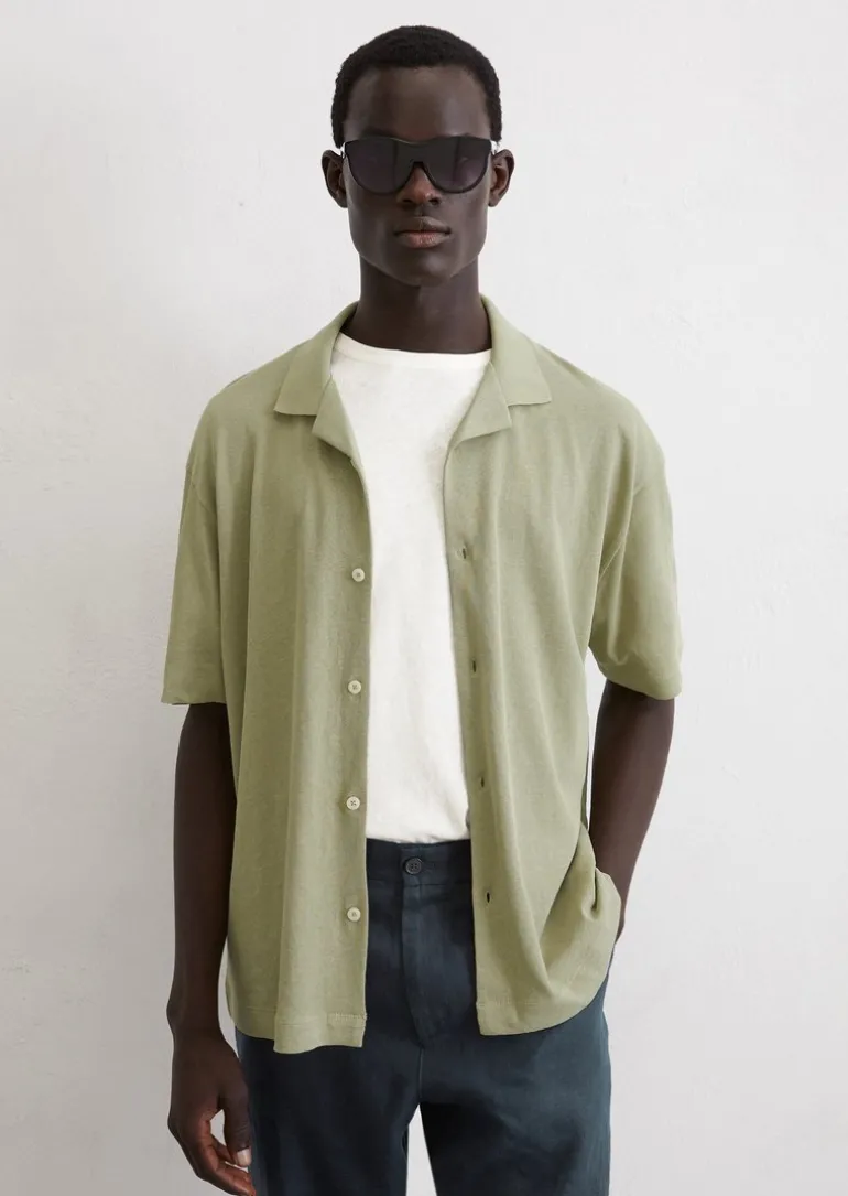 Kurzarm-Jerseyshirt regular aus Bio-Baumwolle und Leinen in grün