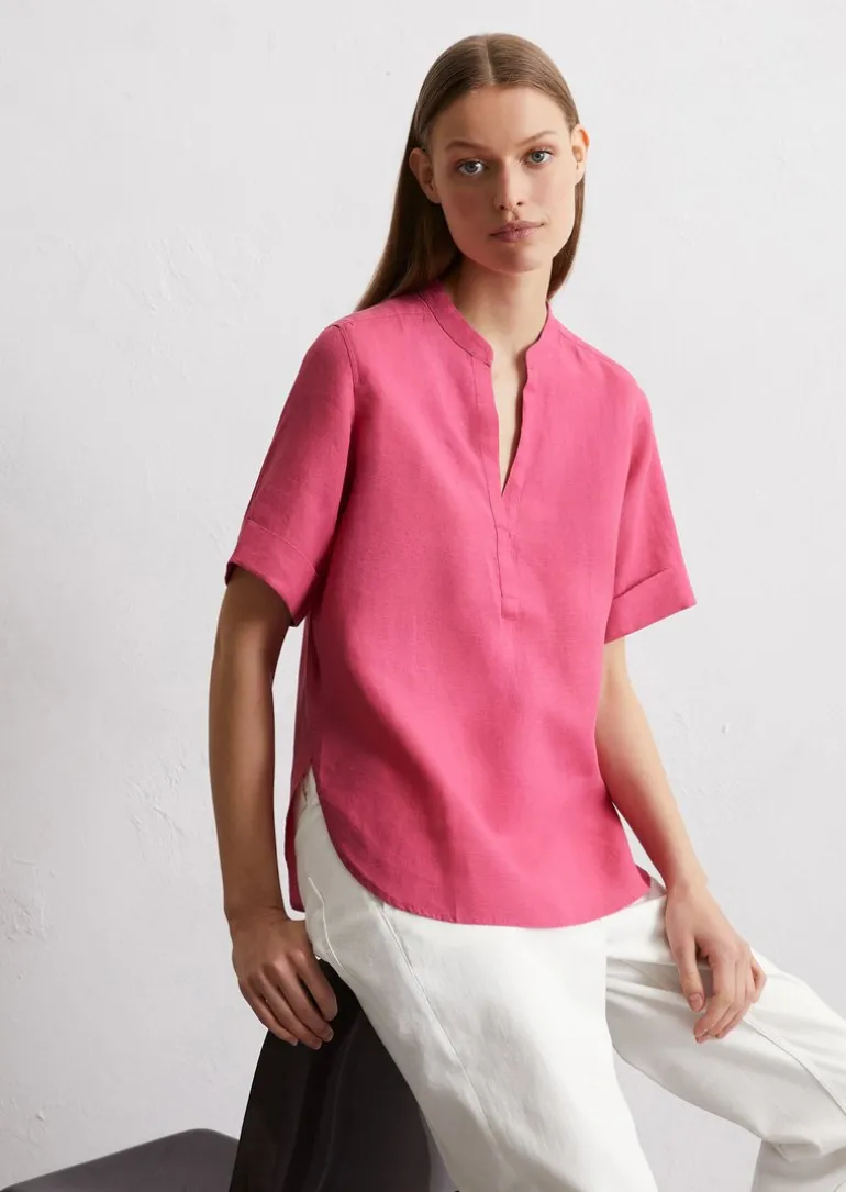 Kurzarm-Leinenbluse regular aus leichter Qualität in rosa