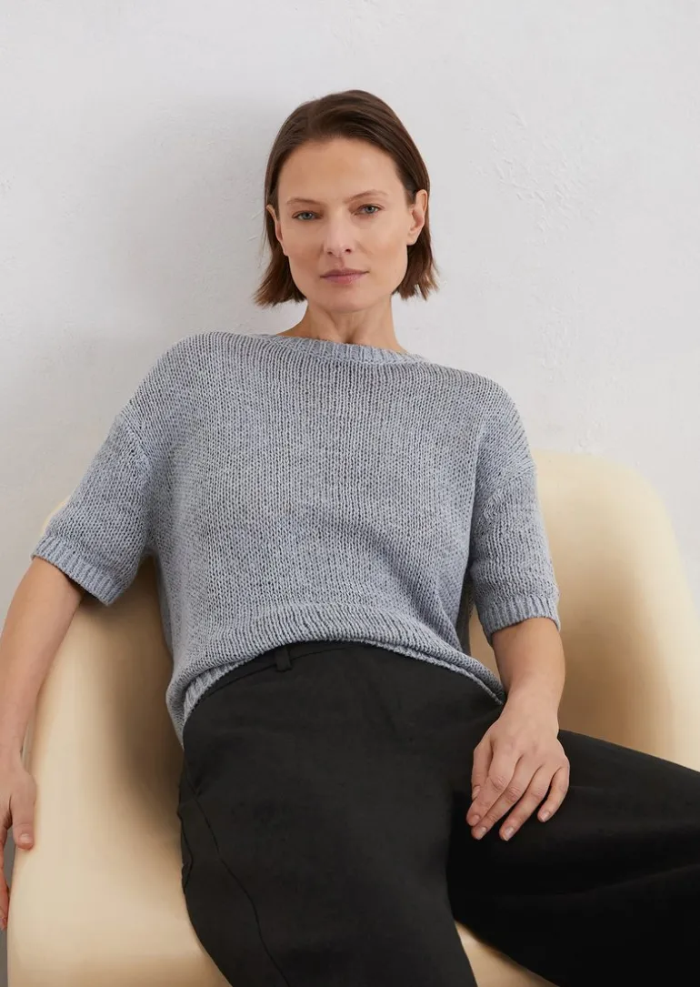 Kurzarm-Pullover loose aus Organic Cotton-Mix in blau