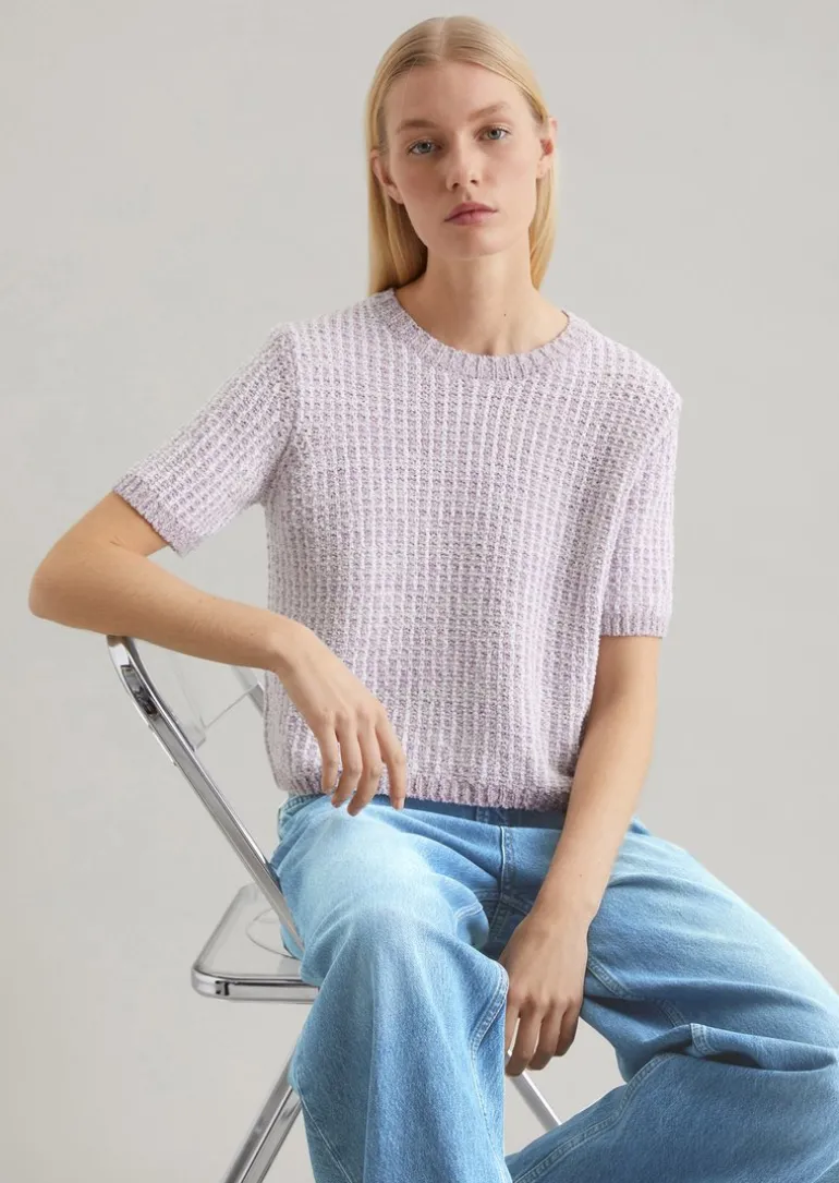 Kurzarmpullover loose aus Struktur-Strick in lila