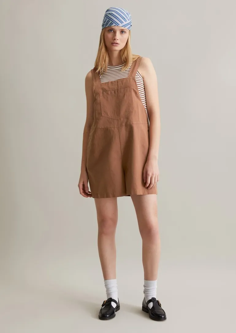 Kurzer Overall relaxed aus Leinen-Baumwolle-Mix in braun