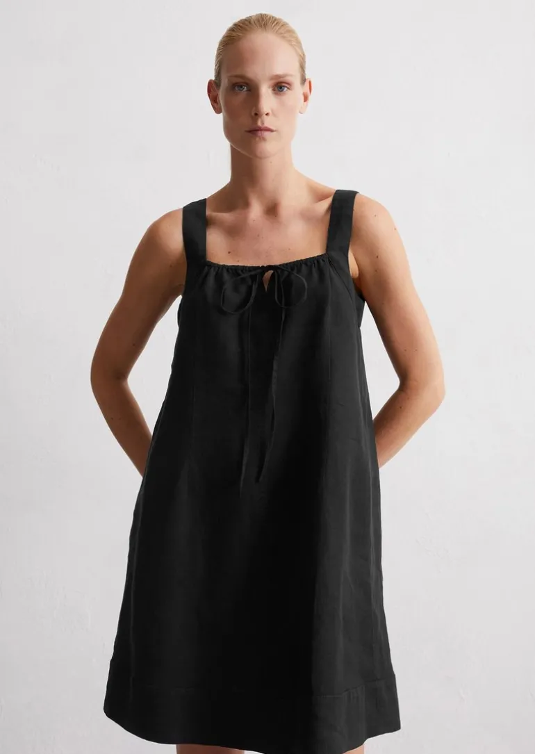 Kurzes Leinenkleid flared aus leichter Qualität in schwarz