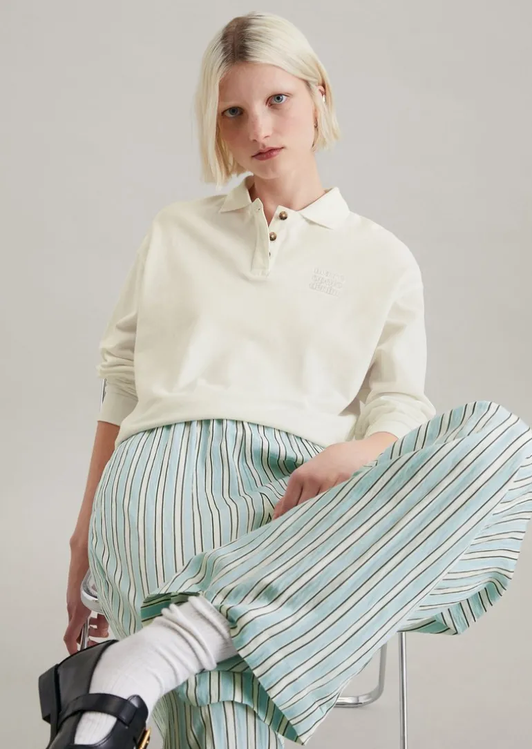 Langarm-Poloshirt wide aus Piqué-Jersey in weiss