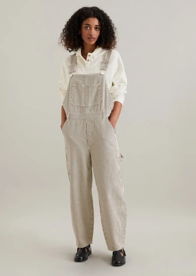 Latzhose relaxed aus gestreiftem Organic Cotton in weiss