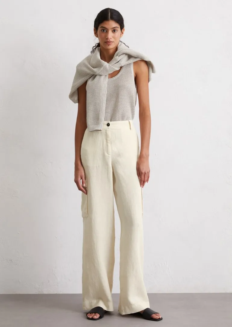 Leinen-Cargopants straight mit Garment dye-Effekt in beige