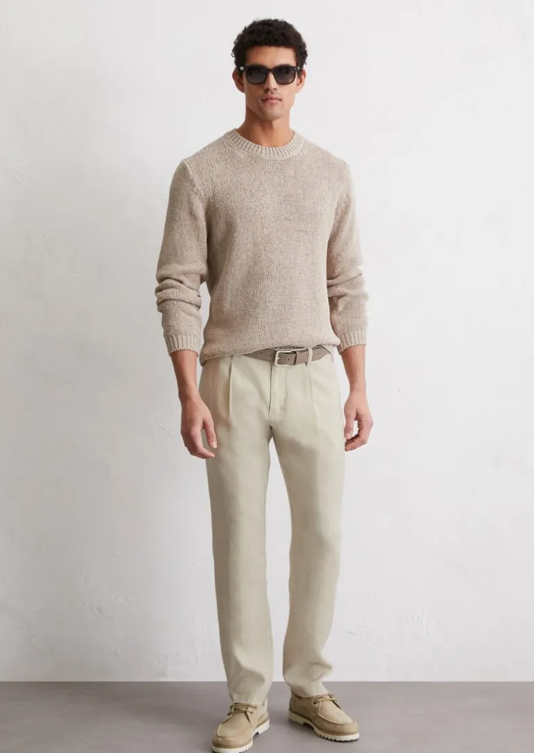 Leinenhose Model Osby jogger pleats mit elastischem Bund in braun