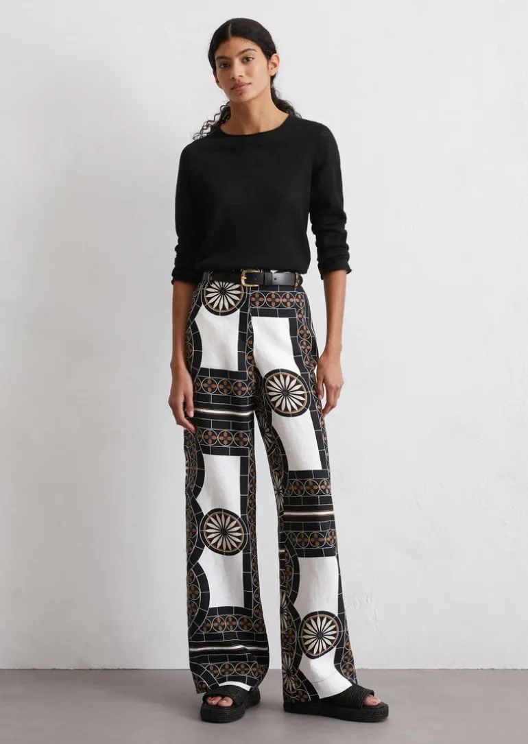 Leinenhose straight mit lässigem Allover-Print in mehrfarbig
