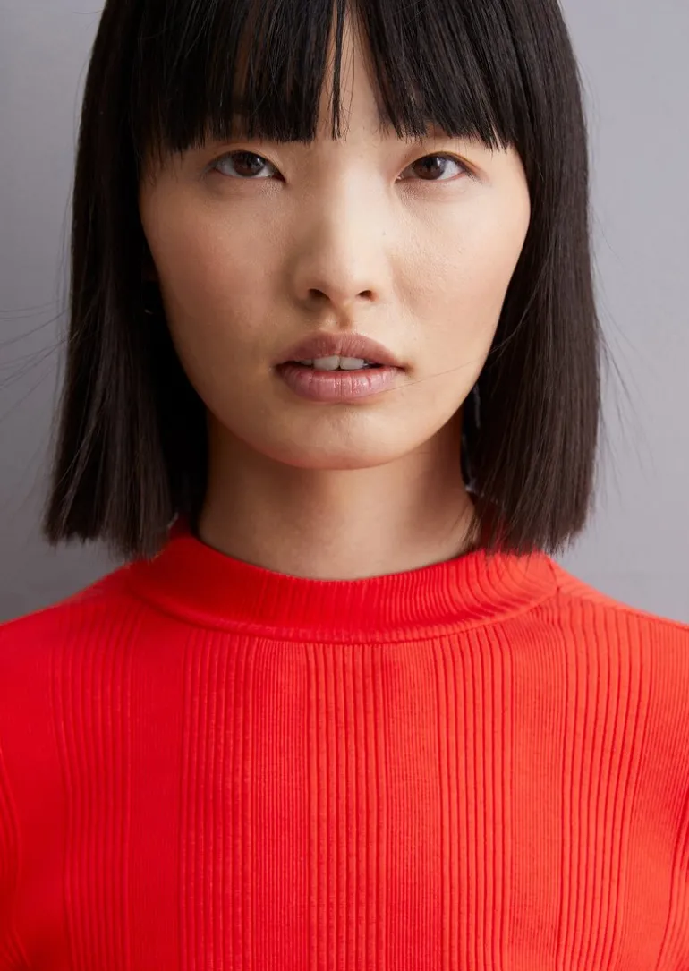 Longsleeve mit Stehkragen slim aus Ripp-Jersey in rot