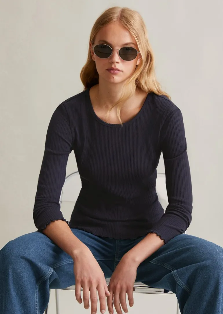 Longsleeve regular aus modernem Ribbjersey in blau
