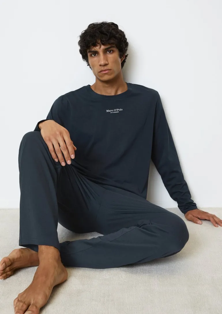 Lounge-Longsleeve regular aus Bio-Baumwolle in blau
