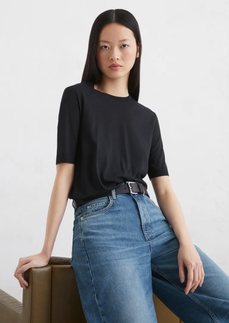 Luxury T-Shirt regular aus TENCEL™ Lyocell-Baumwolle-Mix in blau