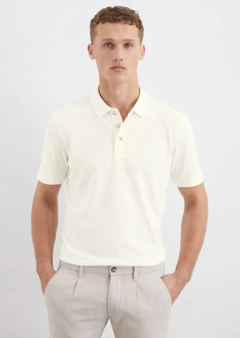 Poloshirt Piqué regular mit Dreiecks-Struktur in weiss