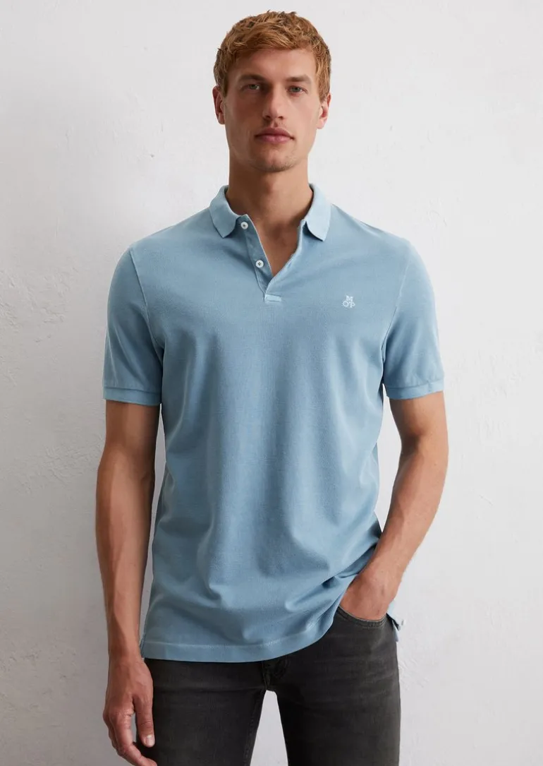 Poloshirt Piqué shaped aus Organic Cotton-Stretch in blau