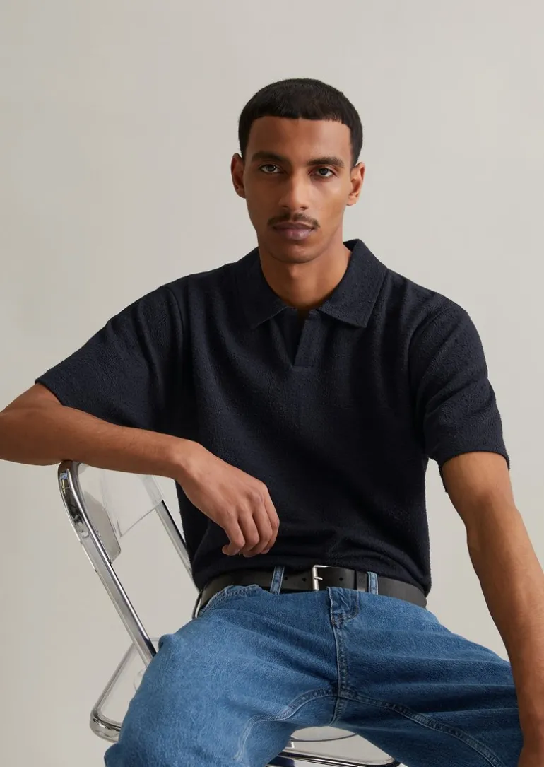 Poloshirt relaxed mit feiner Bouclé-Struktur in blau