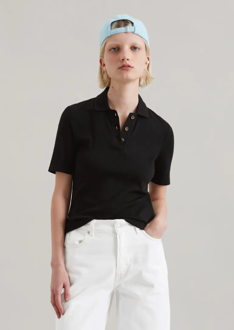 Poloshirt slim aus softem Ripp-Jersey in schwarz