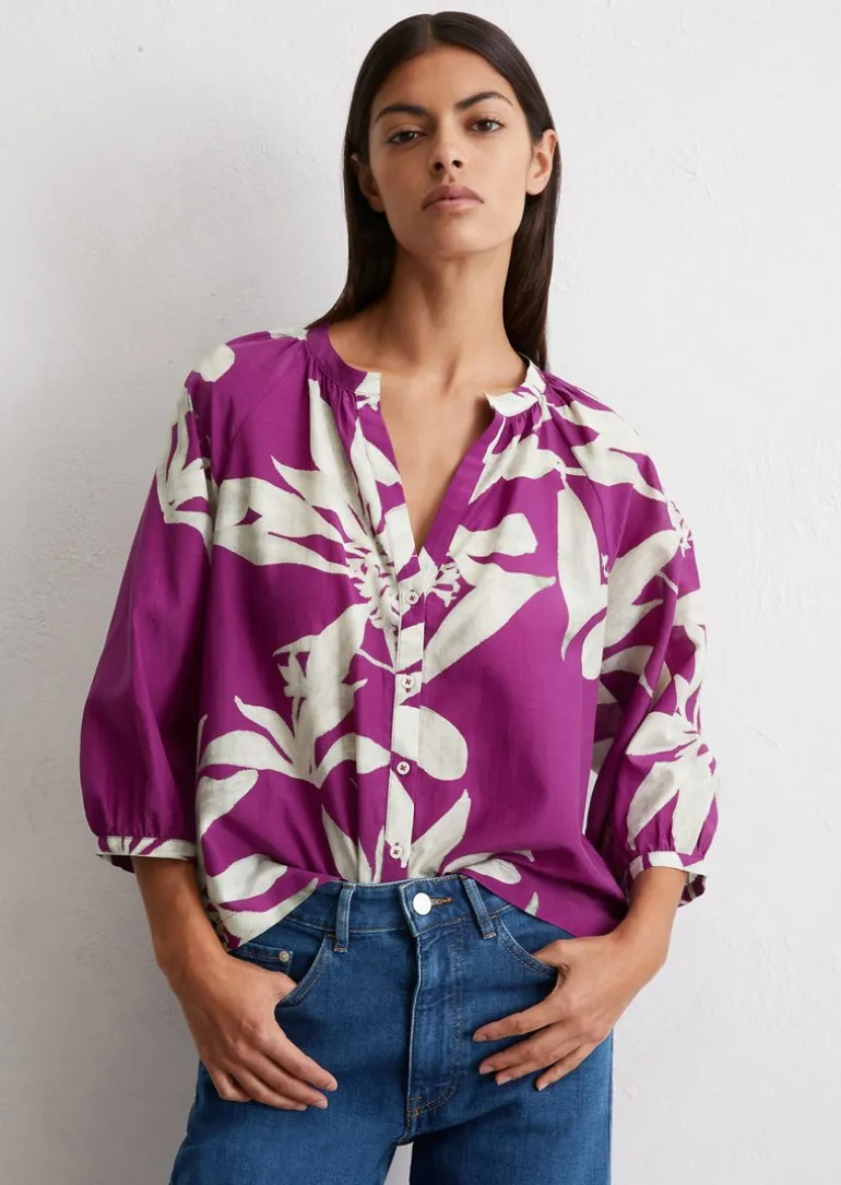 Print-Bluse regular aus Organic-Cotton-Viskose-Mix in lila