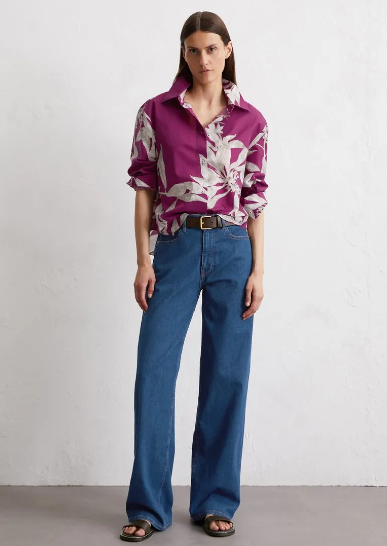 Print-Bluse relaxed cropped aus Papertouch-Popeline in lila