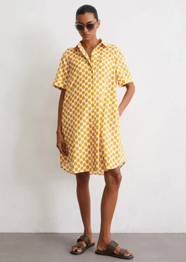 Print-Hemdblusenkleid relaxed aus leichtem Baumwoll-Voile in mehrfarbig
