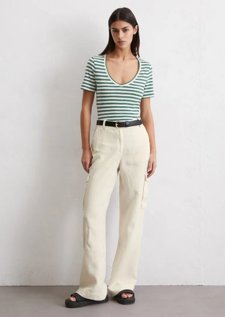 Ringel-T-Shirt regular aus Organic Cotton Slub Jersey in grün