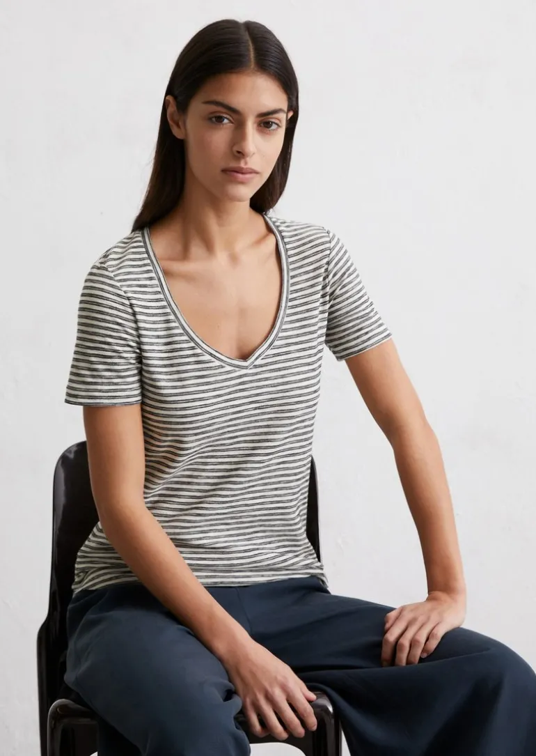 Ringel-T-Shirt regular aus Organic Cotton Slub Jersey in schwarz