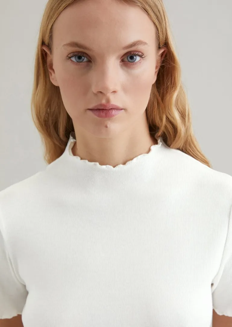 Ripp-T-Shirt slim aus Organic Cotton-Stretch-Jersey in weiss