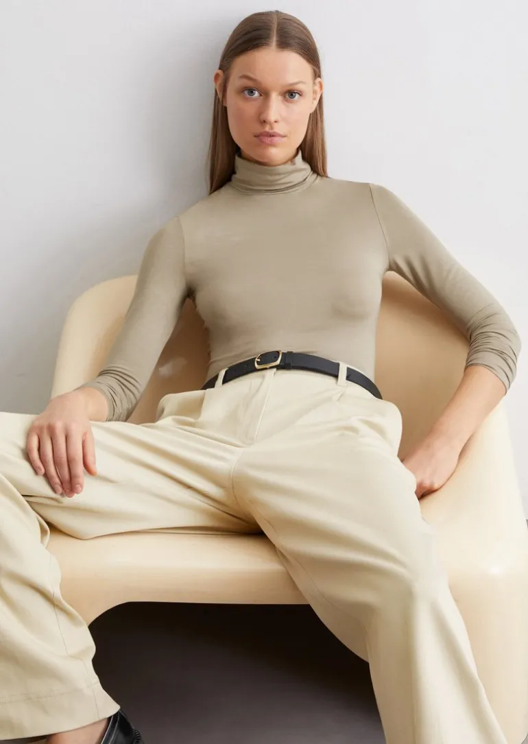 Rollkragen-Longsleeve regular aus TENCEL™ Modal in beige