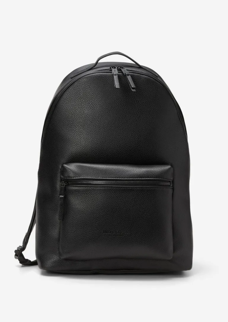 Rucksack medium aus einer Lederalternative aus recyceltem Polyester in schwarz