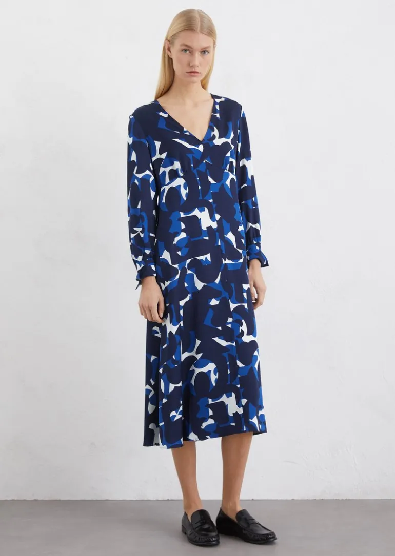 Satinkleid A-Shape aus fließender Viskose in mehrfarbig