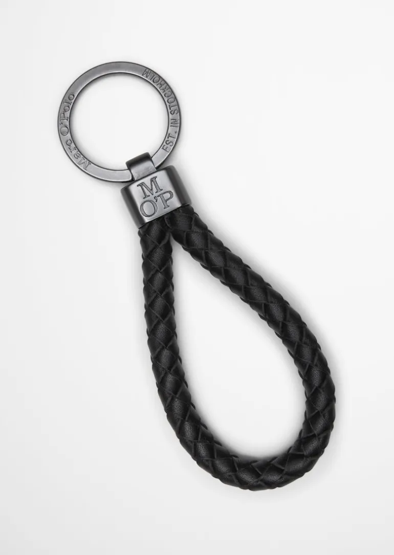Schlüsselanhänger mit geflochtener Lederschlaufe in schwarz