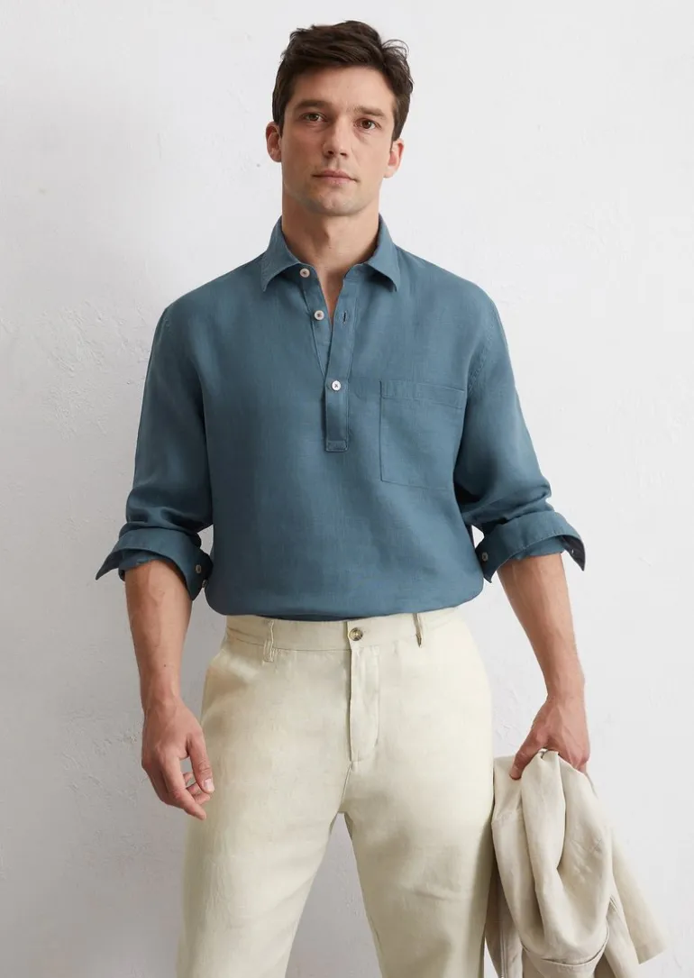 Schlupfhemd regular aus reinem Leinen in blau