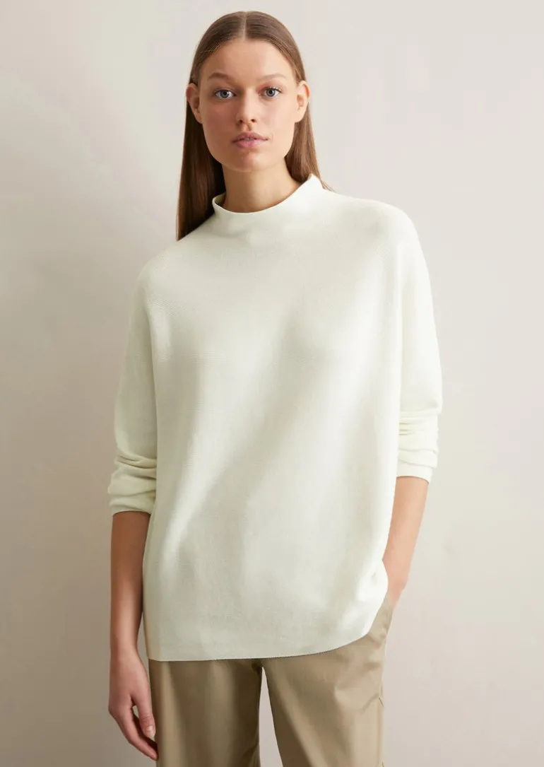 Seamless-Pullover oversize aus softer Bio-Baumwolle in weiss