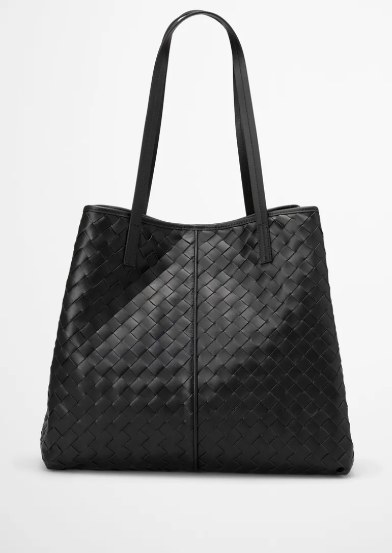 Shopper large aus geflochtenem Rindleder in schwarz