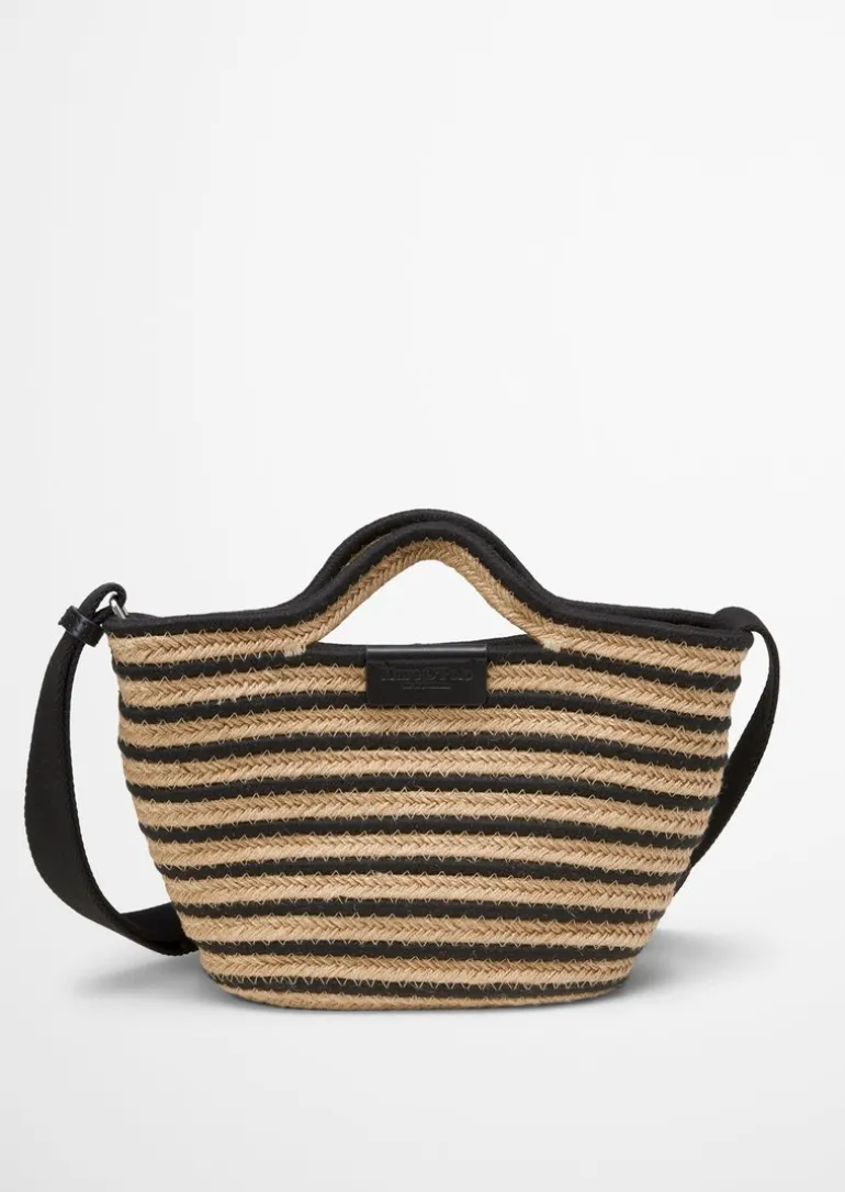 - Aus natürlicher Jute und recycelten Baumwoll-Streifen