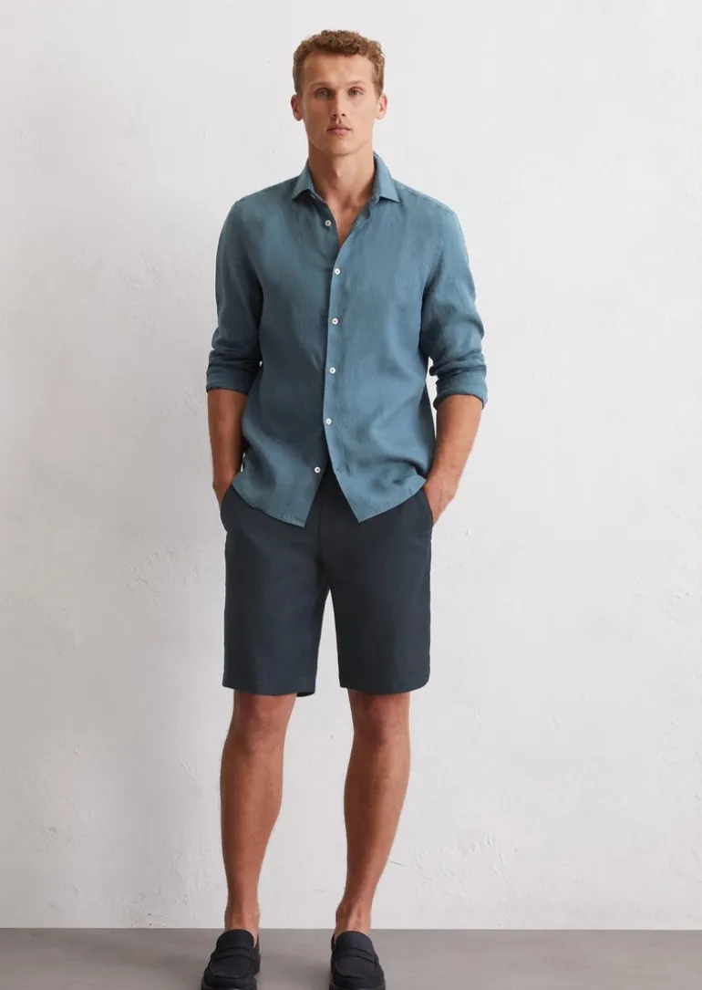 Shorts Model Reso jogger aus reinem Leinen in blau