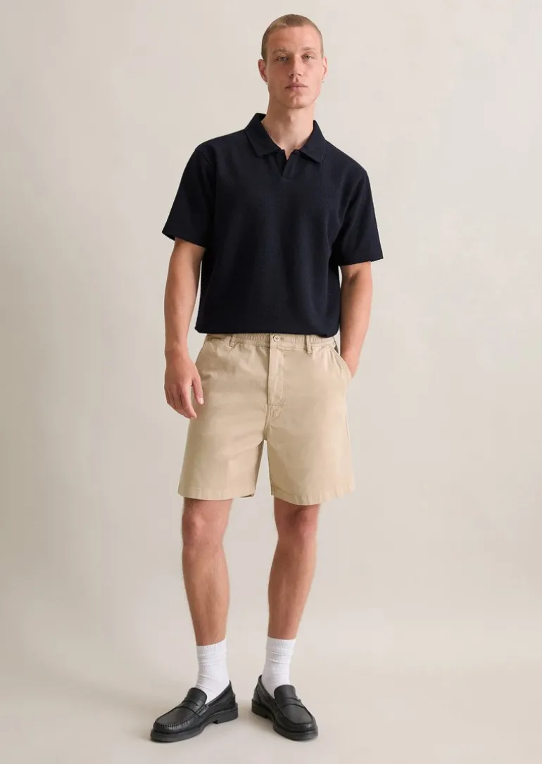 Shorts regular aus elastischem Bio-Baumwoll-Twill in beige