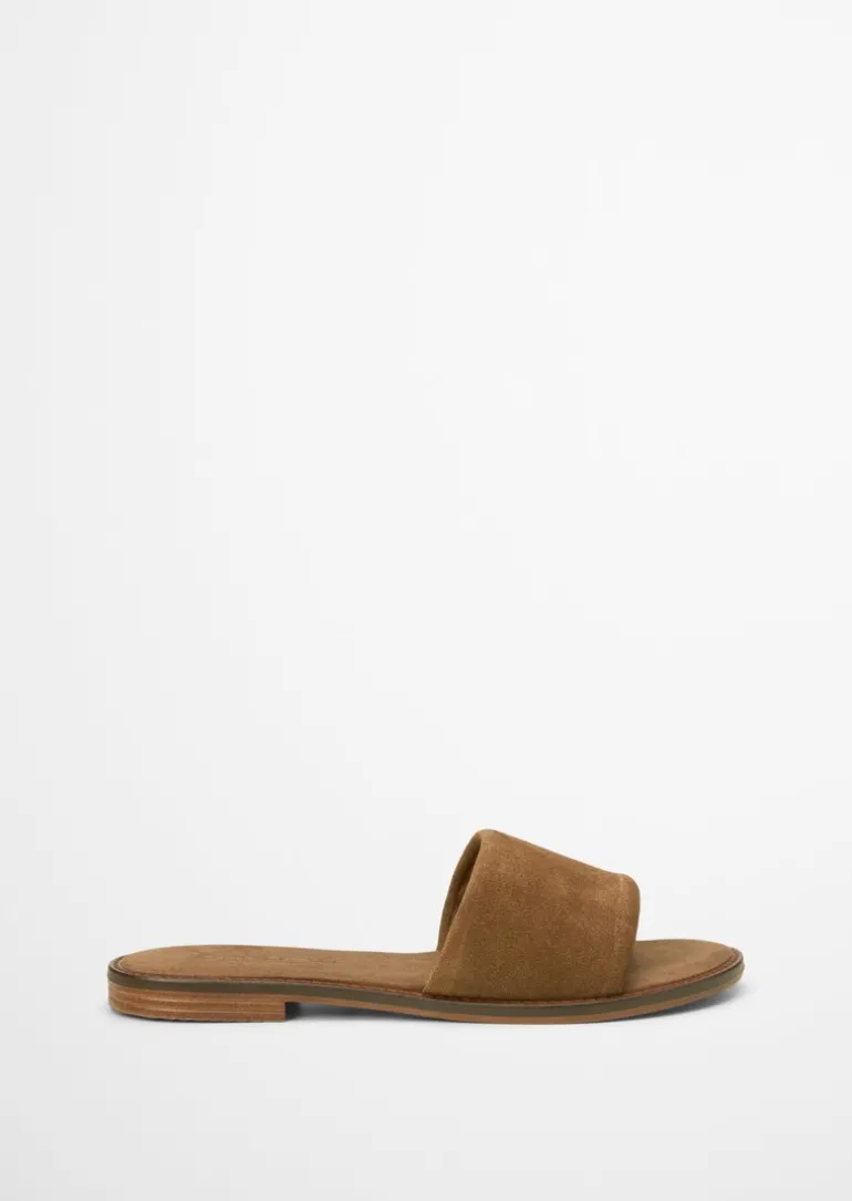 Slides aus weichem Veloursleder in braun